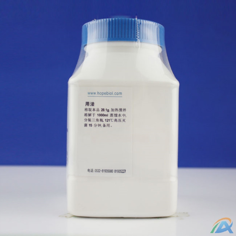 称取本品 28.1g,加热搅拌溶解于 1000ml 蒸馏水中,分装三角瓶,121℃高压灭菌 15 分钟,备用。