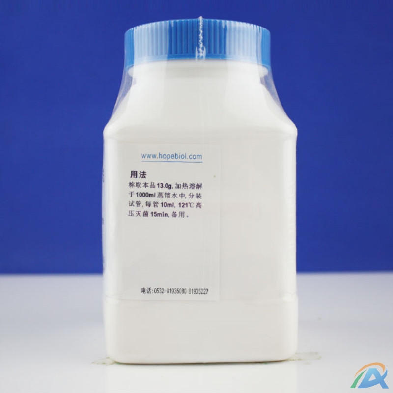 用法:称取本品 13.0g,加热溶解于 1000ml 蒸馏水中,分装试管,每管 10ml,121℃高压灭菌 15min,备用。